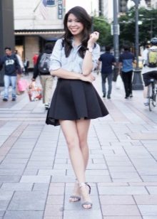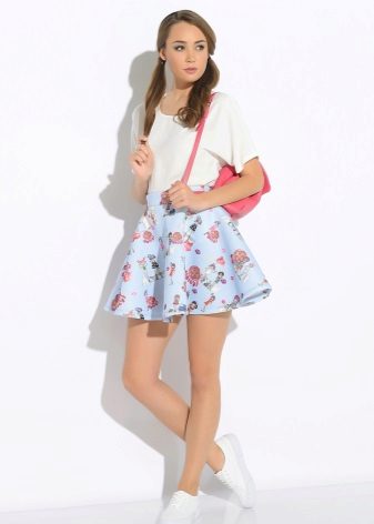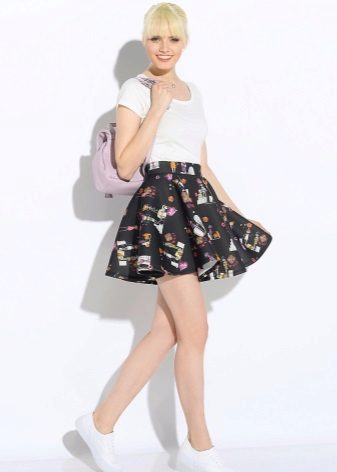 Alegerea pantofilor depinde în totalitate de preferințele personale. De exemplu, pentru a crea un arc sport, puteți purta adidași sau adidași cu o fustă din neopren.
