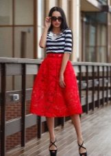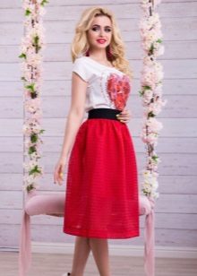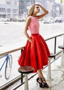 Fusta pufoasă a oricărei nuanțe a paletei roșii arată luxoasă și atrage privirea.