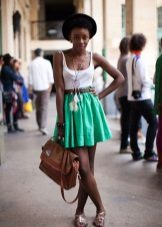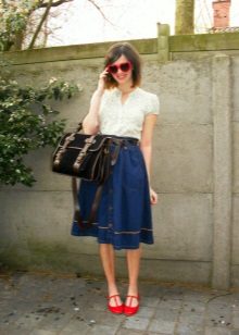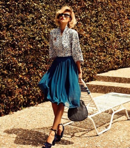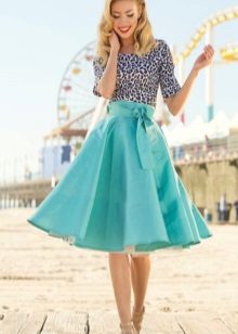 - O fustă voluminoasă se încadrează perfect în aspectul retro. Este completat de o bluză sau corset drăguț, precum și bărci.