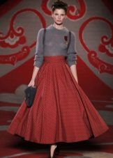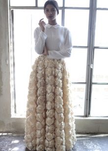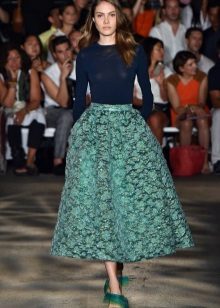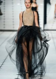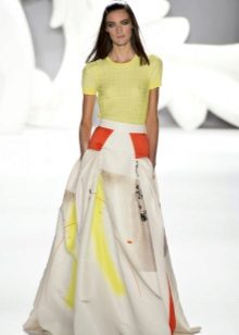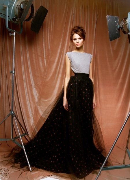 Această versiune a fustei arată cel mai de succes pe o fată cu statura medie și înaltă, cu șolduri înguste, iar fustele luxuriante de lungime considerabilă nu sunt potrivite pentru frumusețile cu o figură „pere”. Combinați o fustă lungă volumetrică cu o bluză strânsă sau bluză fără mâneci.