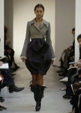 Dacă o fustă pufoasă este purtată cu cizme, atunci acestea aleg opțiunea care se potrivește strâns la picior. În același timp, trebuie evitați pantofii, al căror vârf ajunge la mijlocul picioarelor, deoarece astfel de cizme vor scurta vizual picioarele.