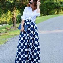 O fustă maxi voluminoasă este adesea aleasă pentru un aspect feminin și romantic.