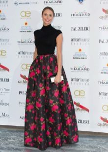 Unul dintre cele mai populare modele pe o fustă pufoasă este o floare. Această imprimare este prezentată în diferite combinații de culori și diferite dimensiuni de flori.
