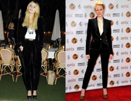 Când Misha a purtat încuietori pictate în blond, a fost deseori comparată cu o altă actriță blondă - Evan Rachel Wood. Legat de un tip de aspect și având tenuri similare, multe vedete își fac ținute asemănătoare între ele. De atâtea ori s-a întâmplat cu acest cuplu. Una dintre opțiunile pentru lupta lor la modă este o viziune diferită despre cum ar trebui să fie un arc de pantaloni negri și albi. Dacă evenimentul are un cod vestimentar strict, atunci Wood câștigă cu siguranță, dar pentru o întâlnire mai informală, alegerea lui Barton este bună.