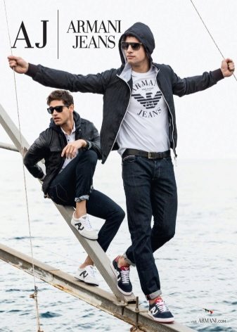 Keďže Armani Jeans je predovšetkým mladé a dynamické publikum, všetky modely tenisiek a tenisiek sa vyrábajú v tomto štýle. Tenisky sú vyrobené z pravej kože, textilu alebo z kombinácie týchto materiálov.