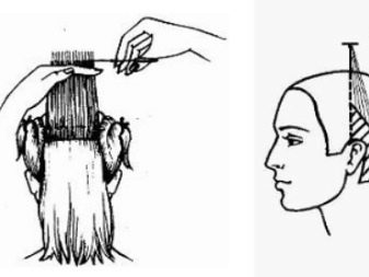 - odpojené do prameňov, chytené sponami alebo sponkami do vlasov, aby sa zabránilo vytváraniu prekážok pri rezaní;