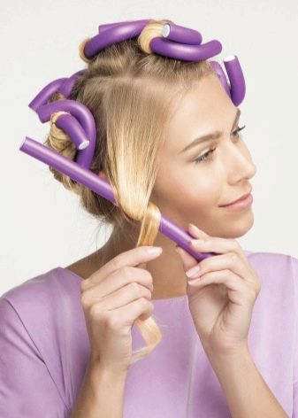 Natáčky sa natáčajú v rovnakom poradí. S ich pomocou sa získajú pružnejšie kučery. Účes získava odolnosť.Po úplnom vysušení sa natáčky odstránia. Ak chcete dať vlasy nádhera vyžaduje starostlivé česanie masážnou kefou. Ak chcete získať pružné kučery, uložte ich takto: opatrne vyberte natáčky, opatrne rozoberte pramene prstami, jemne ich zatraste.