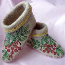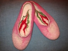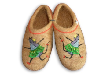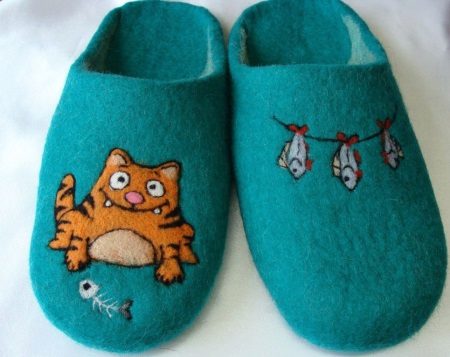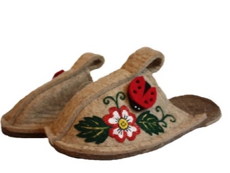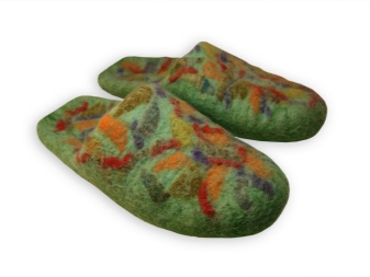 - kreslenie plnené technikou suchého plstenia. Tento vzor je odolný, pretože v procese plstenia sa stáva neoddeliteľnou súčasťou papuče.