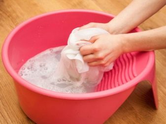 - Po umytí by mal byť predmet jemne niekoľkokrát opláchnutý v studenej vode, kým sa prací prostriedok nevyperie.