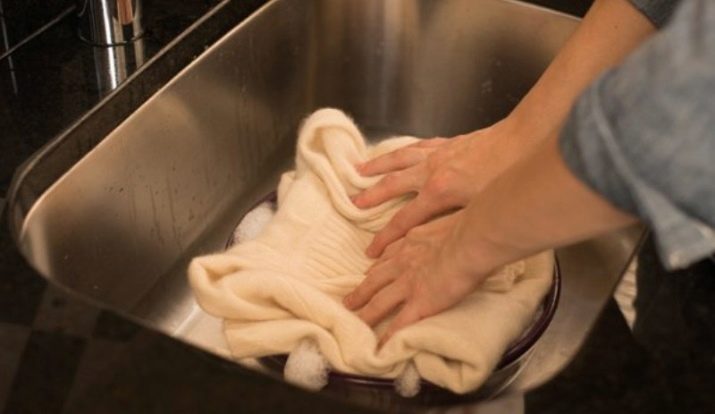 - Odporúča sa, aby sa škvrny, ktoré sa vyskytujú na kašmírovej tkanine, odstránili čo najskôr pod chladnou vodou neagresívnym tekutým detským mydlom.
