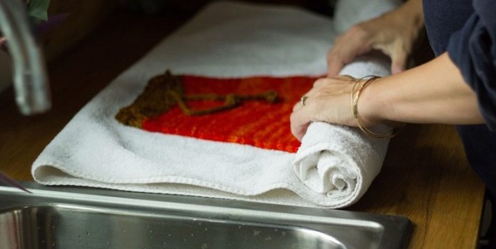 - Bez toho, aby ste stlačili stlačenie, je lepšie zvlhčiť vodou z umytej veci hygroskopickou utierkou.