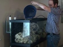Делимичне промене воде су потребне недељно. Помоћу црева или канте сипајте 20-30% течности у празну канту и напуните акваријум чистом, сталоженом водом. Не препоручује се потпуна замена воде, што може да поремети микроклиму акваријума. Таквој радикалној мери прибегавају се само у случају заразе риба вирусним и бактеријским инфекцијама.