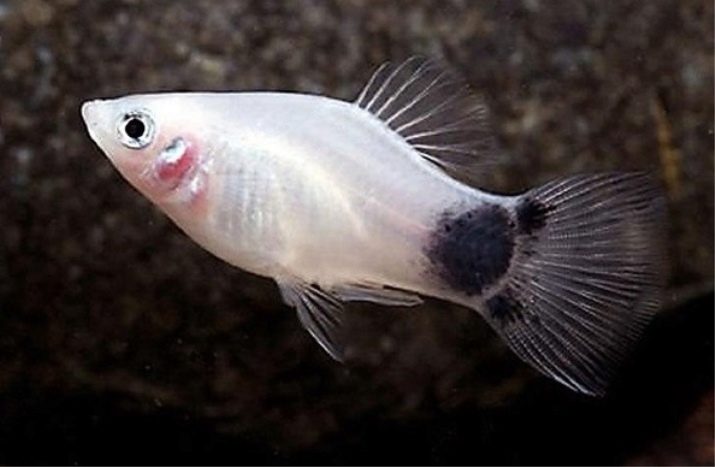 - Белосива. Прате је појава белих флека на телу, боја рибе постаје бледа, оболели појединац задржава се у близини површине воде. Заражене пецилије су у карантину и третиране хлорамфениколом пет дана.