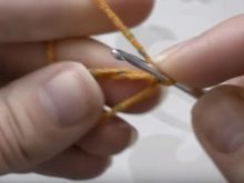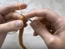 Сегменти су намотани на кажипрсту и средњим прстима, а затим се секу по средини. Ове траке су причвршћене на сваки ред лавове главе (морате почети са 15. редом).