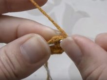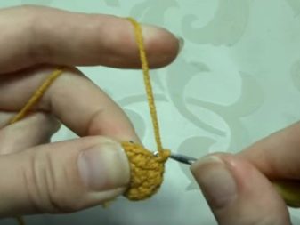 Препоручује се одмах пређите на формирање горњег дела носа. Да бисте га направили, боље је узети пређу жуте боје и прикупити шест ваздушних петљи, а притом оставити најдужи крај нити, јер ће се уз његову помоћ део пришити уз њушку.