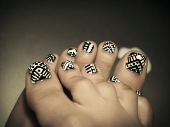 Занимљив дизајн педикира помоћу црно-бијелог лака представљен је у наредном видеу.