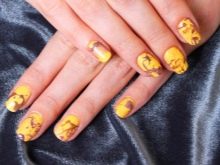 - Нокти украшени техником мермера могу бити прилично светли, главна ствар је одабрати праве боје. На пример, жути нокти са смеђим венама погодни су за љубитеље цасуал одеће.
