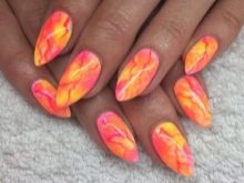 - Одлична летња опција за опуштање на мору може бити „мермерни“ узорак на ноктима у наранџастим тоновима.