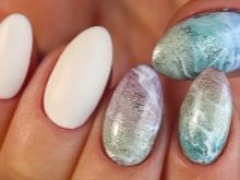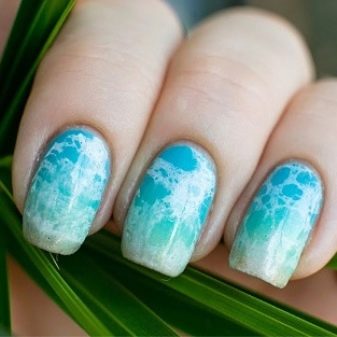 - Небо на ноктима, начињено у техници „мермера“, такође изгледа врло женствено и симпатично. Некима таква маникура може личити на морску пену. Одлично за лето.
