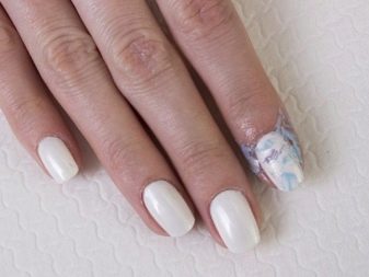 - Мрље од белог мермера изгледају прилично занимљиво на ноктима са сјајем. Они оплемењују маникуру, уклањајући прекомерни сјај, а истовремено одржавају нежност.