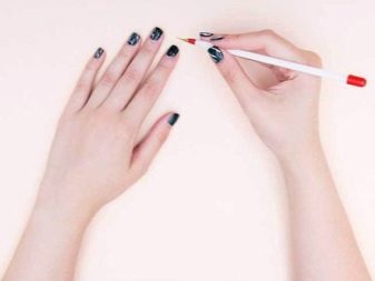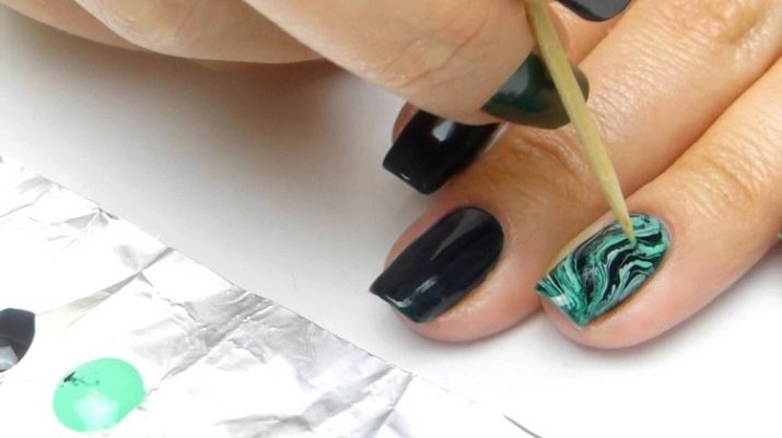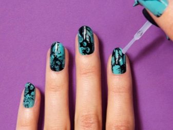 - Сада помоћу четке морате на нокте нанијети „мермерни“ узорак.