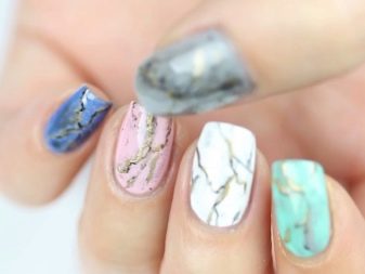Али многи мајстори нису ограничени на ове боје, већ на ноктима стварају имитацију тиркиза, кварца, малахита и других природних минерала који имају сличан образац. Све ове опције такође припадају „мермерном“ дизајну.