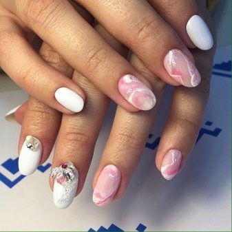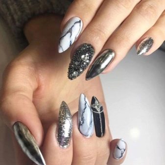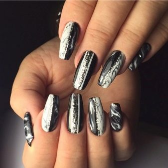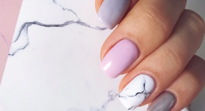 Маникура са „мермерним“ ефектом увек изгледа елегантно и уклапа се у пословни стил и у вечерњу одећу. Главна ствар је одабрати праву комбинацију нијанси. Ево неколико примера како можете лепо дизајнирати нокте у овој техници.