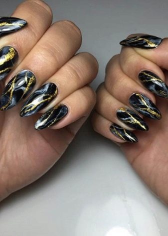 - Златне пруге на црном мермеру већ су маникир за опуштање у ноћном клубу или на забави.
