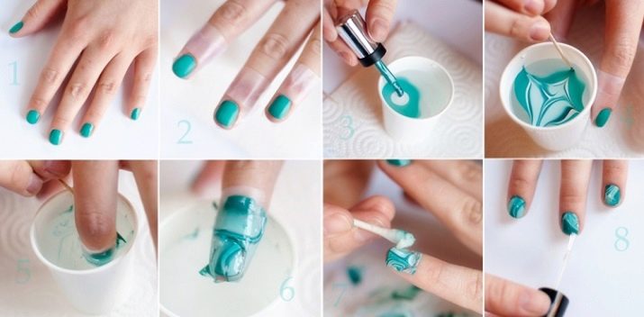 - У воденој технологији то се најчешће повезује са неприкладном температуром воде. Ако сте течност узели превише вруће или, обрнуто, превише хладно, онда мешање лакова у жељени образац можда неће успети. Температура воде треба да буде собне температуре. Други разлог немогућности наношења слике на нокте посудом са водом је превише густа конзистенција лакова. Такви производи се не шире добро у течности, једноставно их је немогуће саставити у било који узорак. Такође, лакови различитих компанија могу се међусобно "сукобити", тако да би требало да одаберете премазе истог произвођача и из исте серије.