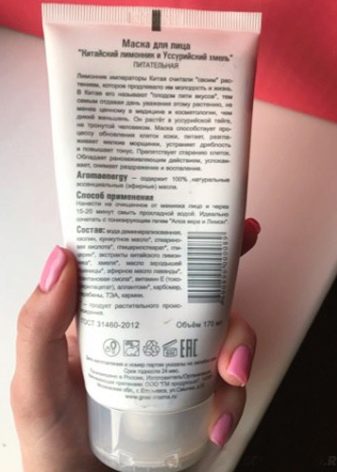 - Храњива маска за лице. Компоненте укључене у састав обнављају ћелије коже, добро их негују и влаже, па чак и изглађују тен. Кинеска вино магнолије даје подмлађујући ефекат, изглађује боре на лицу и уклања трагове умора. Уссури хмељ производи умирујући ефекат, помаже у уклањању упалних процеса на лицу.