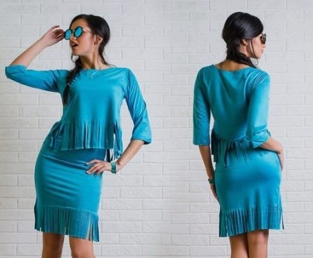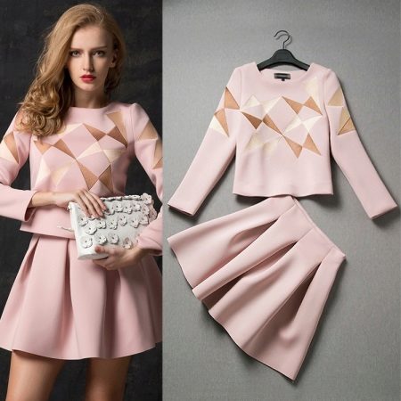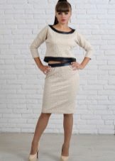 Плетене сукње одијела су врло занимљиве. Често је ово комбинација мини сукње или само равна модела са дуксерицом, топом или бомбер јакном. Опције за уред представљене су јакном и сукњом средње дужине, које могу имати оловку или трапез. Костими са сукњом дужине пода су оригинални и женствени.