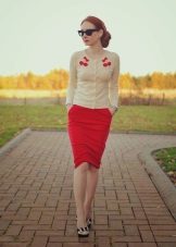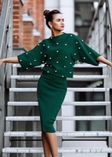 Одијело са сукњом - и тако самодостатна женствена ствар, захтева само одговарајуће сезоне и тајице и елегантне ципеле на високу пету. Њихова горња одећа може се носити преко плетеног одела у парку, јакни (кожа или фармерке), капуту, бомбер јакни или капуту.