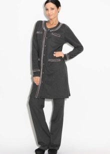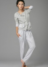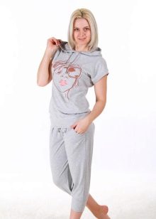 Једнако популарне су и домаће ношње од плетива. Они су врло згодни не само за опуштање, већ и за обављање кућанских послова, док жена увек изгледа елегантно и привлачно. Продавнице нуде огроман асортиман таквих модела у разним комбинацијама ствари. У правилу су то панталонена одела. Одабиром одговарајућег фит, таквом одећом можете сакрити недостатке фигуре. Млади су више тражени у сетовима шорцева и мајица (затворенија верзија - панталоне и мајица), који савршено наглашавају добру физичку кондицију.