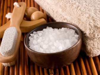 - Ако је храпава кожа проузроковала стварање насипа и кукуруза, треба спровести поступак лечења на бази морске соли и амонијака. У 1,5 литара воде морате додати 2 кашике сваке од ових компоненти и добро измешати смешу. Трајање сесије је 15 минута. Након поступка, кожа ће постати мекана, биће могуће уклонити корне и дебеле и дезинфицирати ноге.