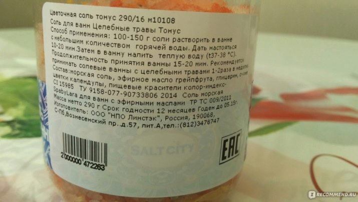 Препоручује се куповина соли без адитива, тако да је можете надопунити одговарајућим биљем, есенцијалним уљима итд. Ако сте купили морску сол с додацима, пажљиво бирајте компоненте купке у њој водећи рачуна о њиховој компатибилности. Сол се комбинује са содом, јодом, биљем и есенцијалним уљима, пеном за купање.