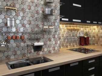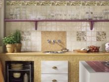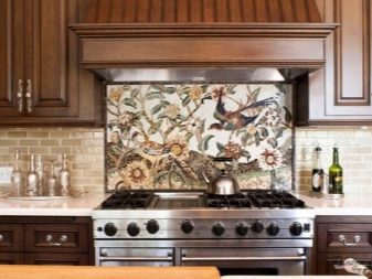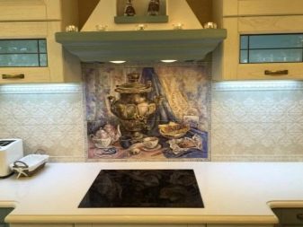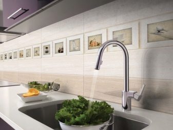 - Комбинација плочица и тематских панела - Необично дизајнерско решење, чија употреба захтева практично и теоријско знање. Сви материјали морају се складно комбиновати и стварати заједничку композицију. Такав декор је значајан по високој цени и сложености посла.