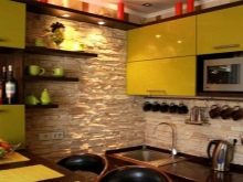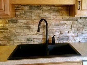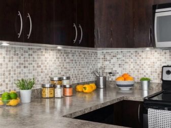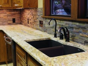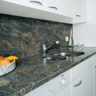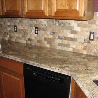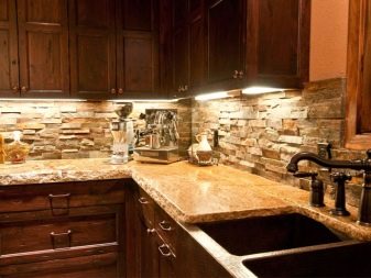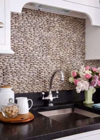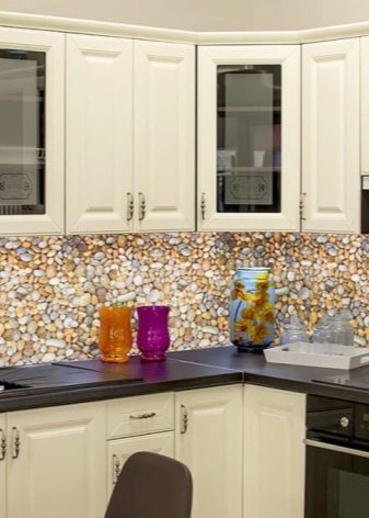 Када користе вештачки или природни камен, дизајнери препоручују да обрате пажњу на потпуно новом материјалу: грубе шљункекоји нема оштре углове. Шљунак нема само високе естетске показатеље, већ такође помаже у уклањању свих налета на кухињској површини.