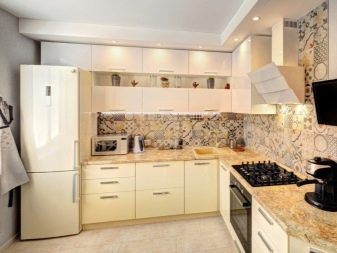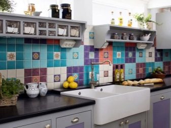 - Коришћење више боја истовремено - Нови тренд, за чију примену морате пажљиво приступити одабиру нијанси. Све употријебљене боје требају бити у складу са кухињским намјештајем и тапетама. Недостатак је визуелно смањење простора.