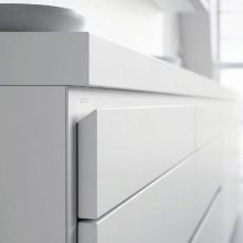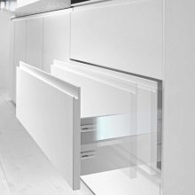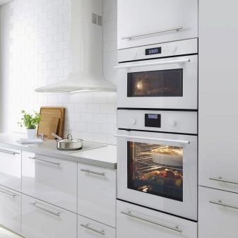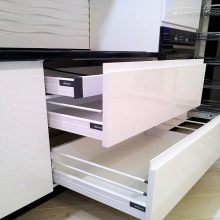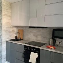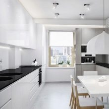 - Увек ће у малим собама победити бела кухиња. Да бисте развеличили и истакли модеран дизајн, можете дати предност слушалицама са посебним потисним механизмима, односно фасаде ће бити без ручица.