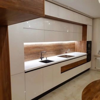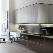 - Сјајне површине су врло тешке за бригу, због чега приликом одабира и дизајнирања кухињске јединице вреди погледати комбинацију текстура. Дакле, фасаде горњих ормара могу бити мат, а доње - сјајне.