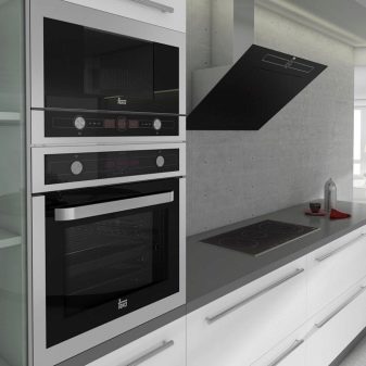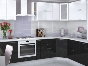 - Сјајни кухињски сет у савременом стилу, употпуњен изванредном капуљачом, може изгледати врло оригинално.