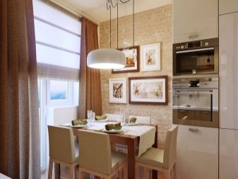 У кухињи од 9 квадрата можете ергономско обликовати и зону за кухање и простор за опуштање са трпезаријским столом у њој. Сва опрема за кухање, уређаји и све што домаћица треба током кухања, обично се налази у таквој просторији на удаљености од пешачења - ово олакшава процес кувања и представља значајну предност.