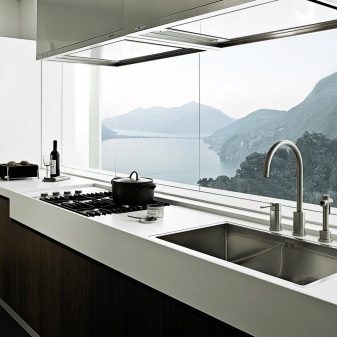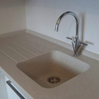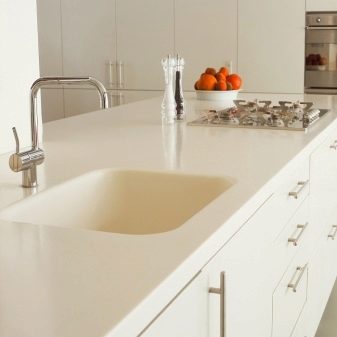 - Умиваонице од умјетног камена интегриране у радну површину изгледају врло корисно у модерном интеријеру кухиње. А у кухињским сетовима - интегрисане ручке.