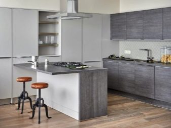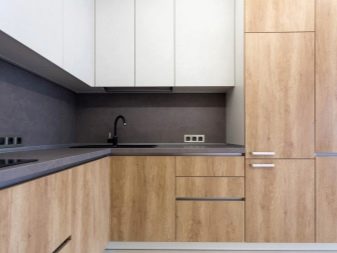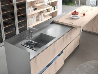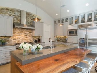 Ако је цоунтертоп тамно сива, Ово је можда трећа пресудна боја због које су пријатељи бели и средње сиви. Стол у бетонској боји ће изгледати добро у простору у којем је много више беле него сиве. А фрагменти столица или чак ручке на намештају могу бити украшени у светлој боји дрвета. Ово ће оживјети собу, сачувати је од хладне графике.