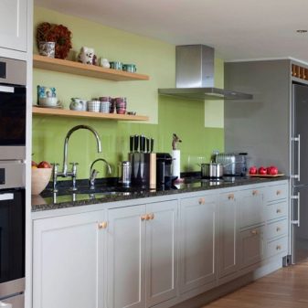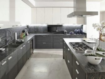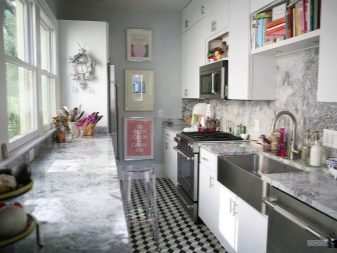 Да не бисте били "тужни" у таквој унутрашњости, вешто користите сиву. Ако говоримо о кухињи, активне инклузије боја биће врло занимљиве - на пример, бела кухиња са сивом радном површином.