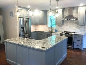 У кухињском простору са сивим пултом могуће су и друге боје у унутрашњости. Размотрите најуспешније комбинације.