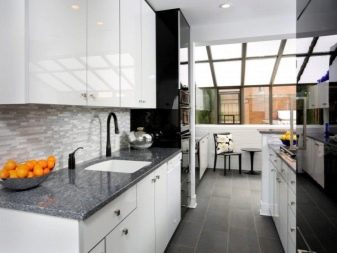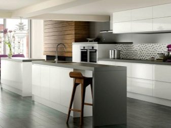 Сива и бела комбинација, изабрана за дизајн кухиње, је одлука која иде у прилог неутралности, концизности, динамичности.Имајте на уму да кухиња у таквом распону може бити и топла и хладна. Али како комбинација боја дефинитивно није досадна и веома суздржавајућа, мора се разриједити трећом бојом. Он ће бити споредан, али одлучујући.