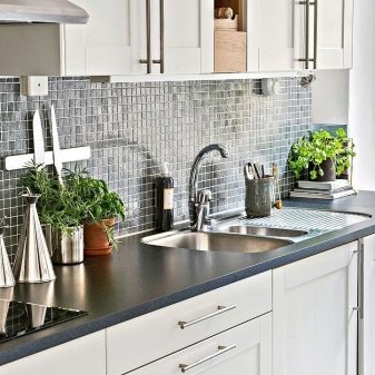Ако у такву кухињу унесете другачију боју, онда је то врло тачно и деликатно. На примјер, бијеле орхидеје могу је украсити, њихове зелене стабљике и листови донијет ће мало динамике у унутрашњост, коју смишљају строго и смирено. Не бојте се играти са природним зеленилом - његова улога је мала, али значајна. Управо биљке чине кухињу у строгим нијансама живахном и њежном. У исто време не дозволите да испразност и хаос уђу у свемир, односно да одржавају његово расположење.