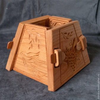 Дрвена пасоцхница је добра за све: трајна, лепа, погодна за употребу. Одбацивши таква „јела“, не можете се бринути за чипс и пукотине - неће их бити. Обично се прави од јелше, па има баршунасту структуру. Једина негација је висока цена у односу на производе направљене од других материјала. Али према породичној традицији, такав празнични украс може се наследити и сачуваће сећање на многе ведре заједничке празнике.
