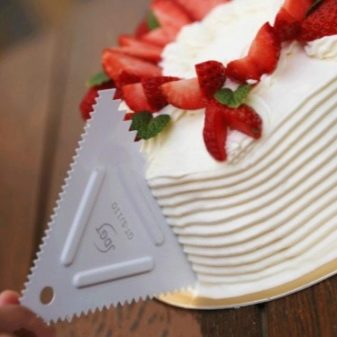 Ови додаци такође се разликују по природи сечива: може бити раван, таласан или са зубима, попут тестере. За украшавање торте са равним уторима препоручљиво је користити назубљену глеђ, да бисте добили равну површину - равну линију.